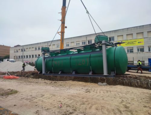 Las obras de la gasolinera junto al instituto Cantabria avanzan con la instalación del depósito